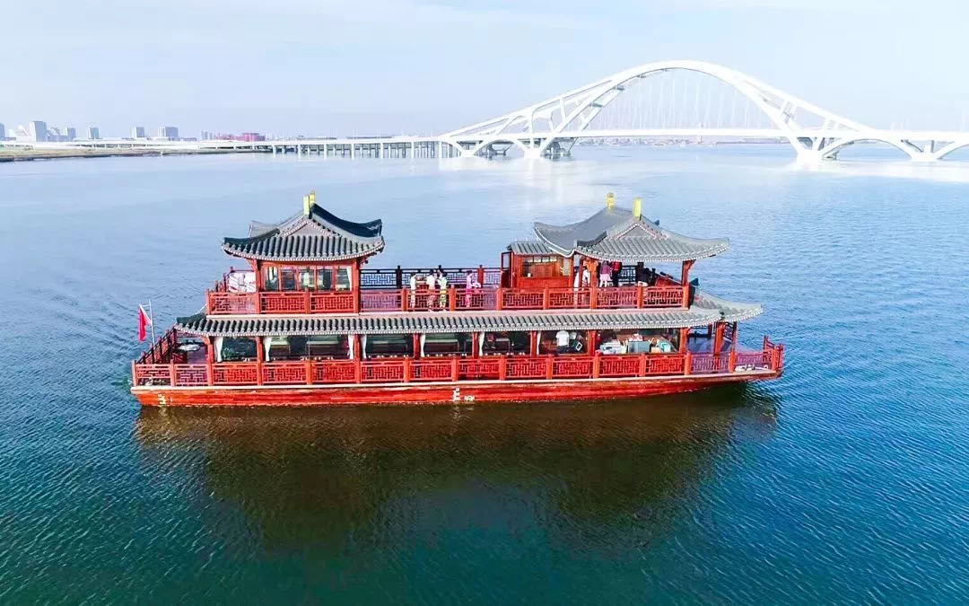 画舫是一艘中国风的仿古游船,船长27.7米,宽7.5米,设有88客位。船体的框架根据中华民族唐代徽派传统建筑风格建造,同时进行了红木的内外包装及装修,房间内的装修及家具古香古色均为红木实木,船舱内设有卡拉OK,可提供船餐服务、观光游览、举行古典婚礼、商务会议、学术交流、产品推介、私人聚会等比较大型的活动。画舫船,整体工艺精湛,风格高雅大方,低调奢华、建筑考究,堪称一件精美的艺术品。