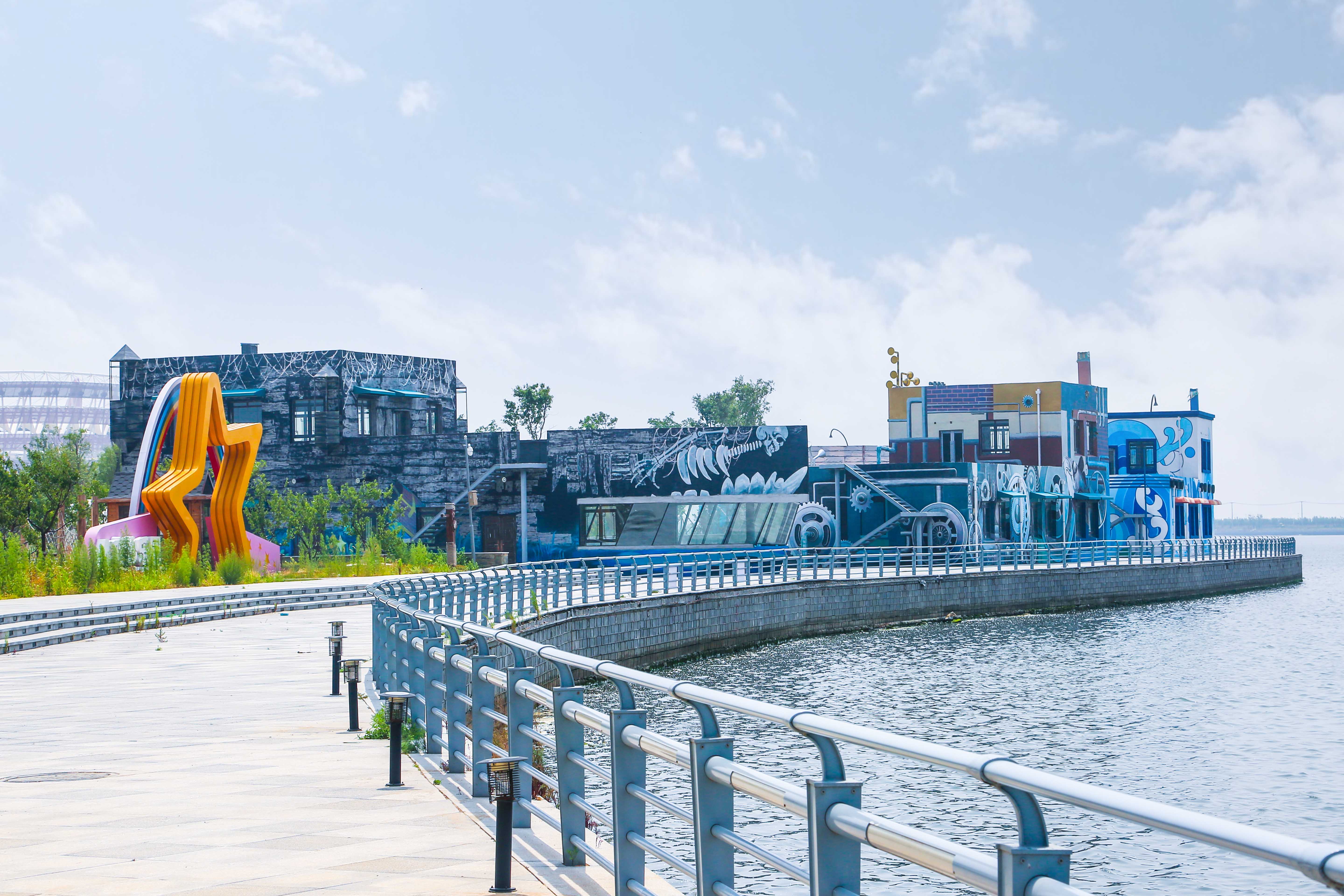 含章湖健康公园,整体以绿色、健康为主题,内设健康步道、健身运动器材、鹅卵石健身等多个功能区域。公园通过良好的生态景观为市民提供优质休闲的娱乐环境,倡导人民健康生活,也是辽东湾新区的一处天然氧吧。